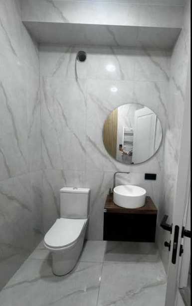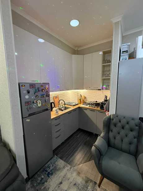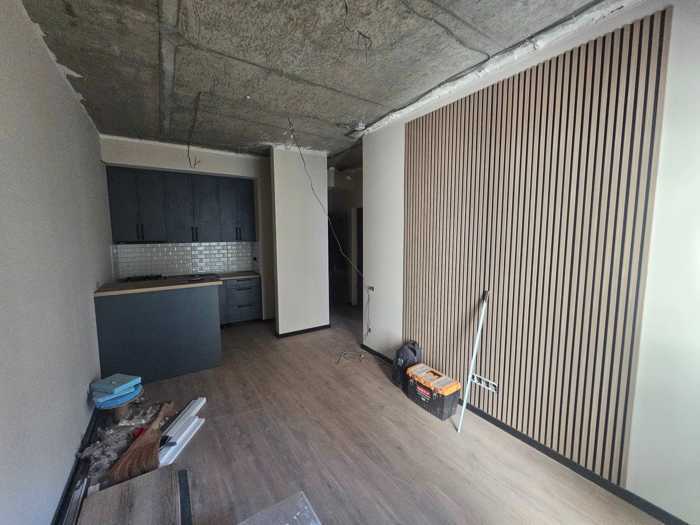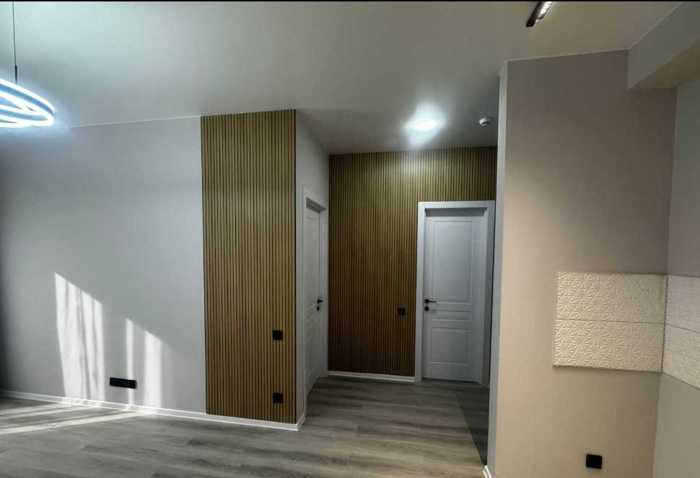 2-комнатная непригодная для жилья квартира в новом доме класса премиум в Мицхуллаве. Корп. 10. Отремонтирована дорогими материалами, обставлена мебелью и техникой, с кабинетами в прихожей, кухне и спальне!