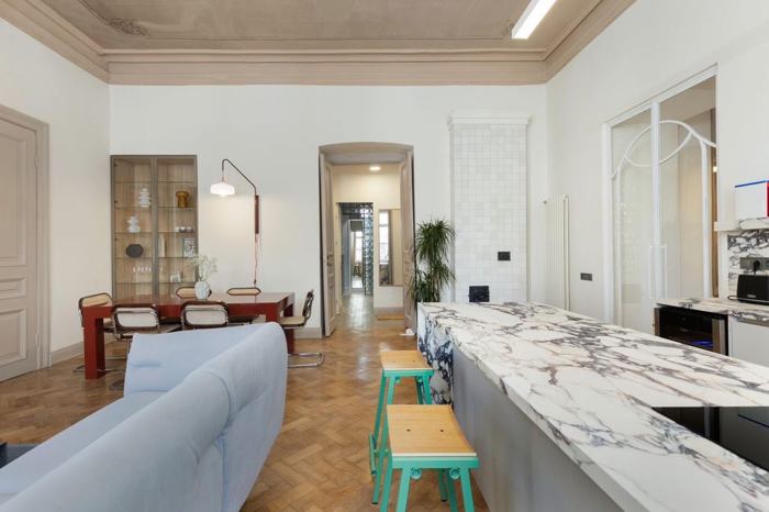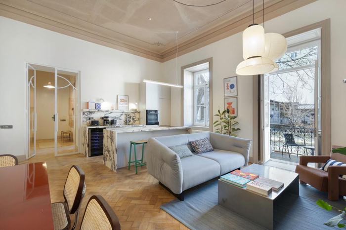 Продается! В центре города, в одном из лучших мест, в историческом районе, в красивой исторической квартире площадью 135 кв.м (жилая площадь) на 2-м этаже нового здания. Квартира новая, отремонтированная и меблированная. Есть два входа, как с улицы, так и со двора. В квартире есть две спальни и большая гостиная, кухня, два санузла, камин (в идеальном состоянии) и два балкона. Квартира светлая, с мебелью, техникой, встроенными шкафами и кухней. Идеально подходит как для жилья, так и для Airbnb.