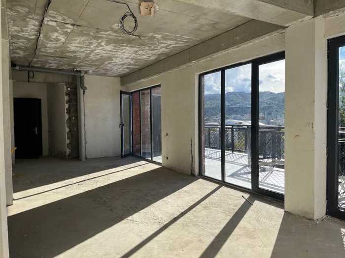 Продается 3-комнатная квартира в зеленом каркасном состоянии, на улице Бухаидзе в Чугуури, в новостройке, площадь 96,8 кв.м, 4-й (5-й) этаж, 2 спальни.