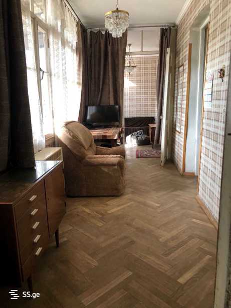 Продается 3-комнатная квартира в Чугурети, на улице Грозного. Жилая площадь квартиры составляет 104 кв.м., также есть подвал - 18 кв.м. О том, будет ли мебель вынесена из квартиры, зависит от желания клиента. Квартира расположена максимум в 13 минутах от "Площади Вокзала" и в 5 минутах от "Карваслы."