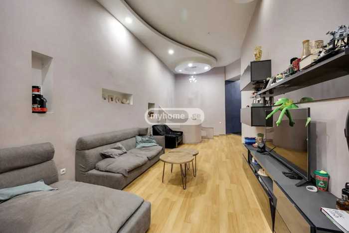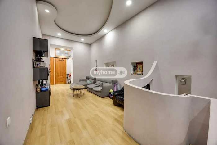 Продается новая отремонтированная квартира с красивым интерьером в историческом районе Тбилиси на улице Плеханова. Квартира находится на улице Киевская, имеет ремонтом высшего качества, высокие потолки (4м), площадь составляет 91 квадратный метр, включает 2 светлые спальни, комнату-студию, 2 санузла и балкон. Продается с мебелью и техникой. Находится в 500 метрах от станции метро Марджанишвили.