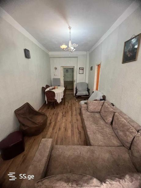 Продается квартира в центре города, 5 минут пешком от вокзала, 10 минут от метро Марджанишвили. Это коридорный тип здания, квартира требует ремонта, продается с мебелью, адрес: 121 Цинамдзгвришвили, я собственник.