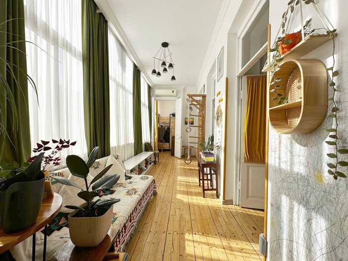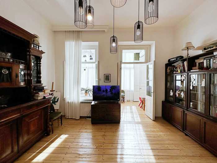 4 спальни, каждая с отдельным санузлом. Чердак приватизирован с потенциалом расширения на 110 кв.м. Есть возможность работать как гостиница. В настоящее время сдан в аренду за 1000 долларов; можно также выселить без проблем. Центральное отопление, кондиционер в каждой комнате. Продается с мебелью и техникой.