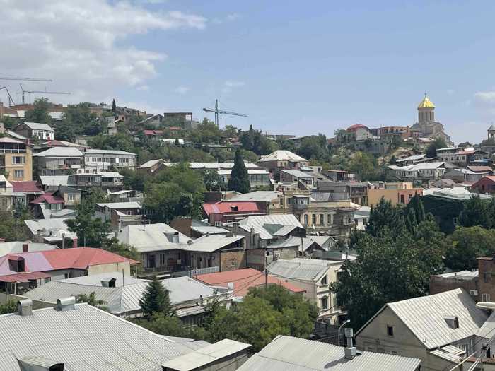 Продается квартира в Старом Тбилиси, улица Воронцов, рядом с церковью Святого Николая, 8/8 этаж, 3 комнаты, лоджия, 2 спальни, 1 ванная комната, старый ремонт, балкон, вид на фуникуляр и Троицкую церковь, 117 000 долларов.