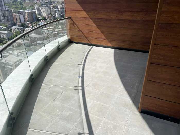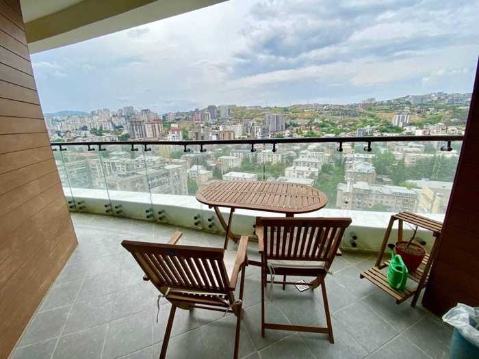 Продается квартира премиум-класса с 3 комнатами в престижном жилом комплексе "Тбилиси Гардens". В квартире 2 изолированные, светлые спальни (мастер-спальня), гардеробное пространство, 2 ванных комнаты, меблирована качественной мебелью и техникой. Есть веранда площадью 15 кв.м. с красивыми панорамными видами на город. Охрана 24/7, услуги консьержа, в комплексе есть крытый бассейн, тренажерный зал, прекрасно озелененный двор, зоны отдыха и развлечений для детей и взрослых.