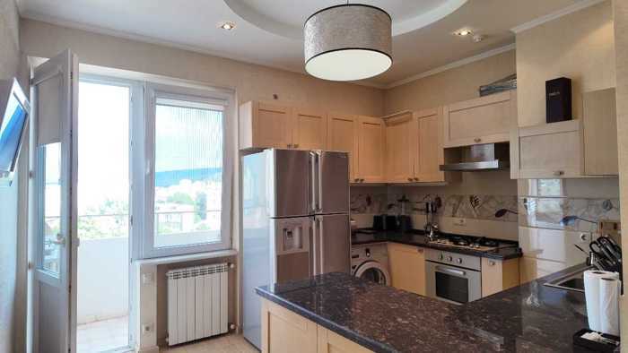 Квартира расположена по адресу Пекинская 4а, в желто-белом здании. В квартире остается встроенная мебель. Есть 3 кондиционера. Также можно приобрести подземную парковку. Большой балкон 20 кв/м застеклен (слайдер). Это светлая квартира с отличным местоположением.