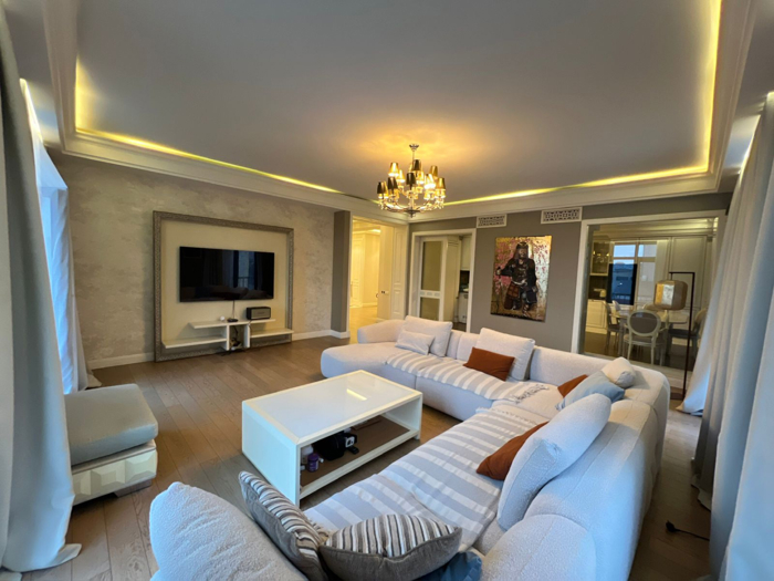Продаётся квартира, расположенная на улице П. Ингороква. Общая площадь составляет 238 квадратных метров. Квартира находится на 5-м этаже десятиэтажного дома. Планировка включает пять комнат, из которых четыре являются спальнями. Также предусмотрены кухня, гостиная, два санузла и пять балконов. В распоряжении владельцев — два подземных парковочных места. Жильё недавно отремонтировано. В интерьере использованы только качественные материалы и предметы итальянского производства: мебель, люстры, межкомнатные двери и другие элементы отделки. Квартира полностью готова к проживанию и отличается элегантным дизайном, сочетающим комфорт и изысканность.