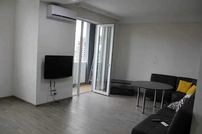 Срочно продается 3-комнатная квартира в Сабуртало, на улице Лорткипанидзе. На 5-м этаже новостройки. Общая площадь: 70 м2. Нова отремонтированная кухня-студия, гостиная, 2 спальни, 2 санузла и балкон. Установлено центральное отопление. Квартира продается с частичной мебелью и техникой. Цена: 125000 долларов США.