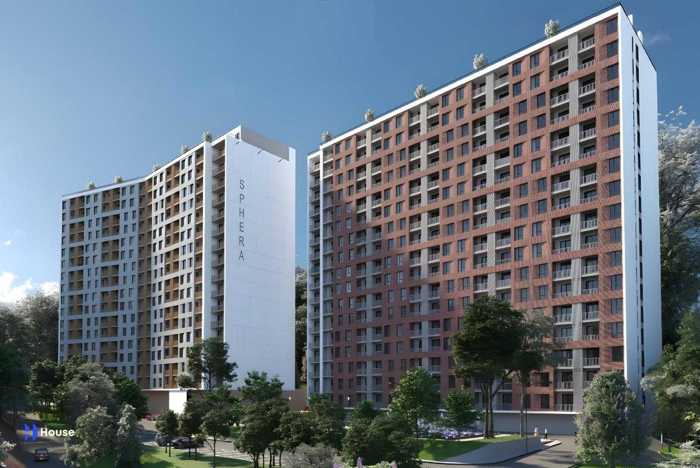 Продается квартира в комплексе SPHERA на 8-м этаже в состоянии зеленого каркаса. Здание оборудовано 4 лифтами OTIS, солнечными панелями и трехэтажной парковкой.