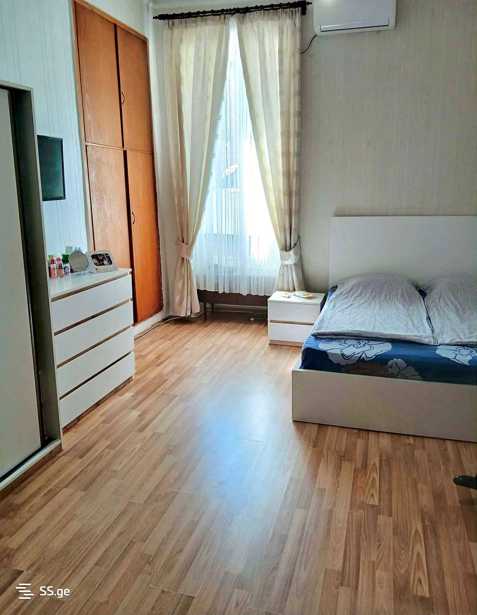 Продаётся отремонтированная квартира площадью 79 квадратных метров на 9 этаже современного здания в начале Багеби. Квартира светлая и солнечная с большой гостиной, выходящей на кухню и балкон. Есть 2 спальни (1 большая спальня и маленькая спальня, предназначенная для одного человека или ребёнка), ванная комната и туалет изолированы друг от друга. У квартиры есть 2 балкона с видом на Черепашье озеро и дорогу к Цихисдири. Квартира продаётся с имеющейся мебелью и техникой (стиральная машина, холодильник, кондиционер) и мебелью. В доме есть собственные игровые площадки и парк.
