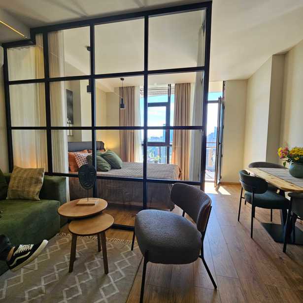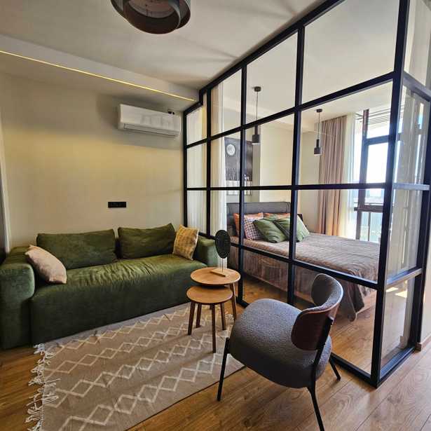 ✨ Современная студия в Багратиони Резиденс, Батуми 🛋 Описание квартиры: -квартира выполнена в современном стиле с использованием качественных материалов; -отделка стен выполнена в технике 3D декорирование; -вся мебель изготовлена на заказ и выполнена в потолок, что максимально увеличивает функциональность хранения и эстетичный вид квартиры; ламинат 33 кл./AC5 12мм водоотталкивающий; -потолки оформлены через теневой профиль, что подчеркивает современный дизайн; -установлены электрические тёплые полы в санузле и коридоре с возможностью управления как вручную, так и через систему «умный дом»; -разводка сантехники выполнена из труб PEXа, каждая точка подключена индивидуально через установленный коллектор, что гарантирует надежность и удобство эксплуатации; -сплит-система: gree_инвертор, wifi; -вертикальный радиатор - 2м_4 секции; -кухня оборудована встроенной техникой: холодильник, микроволновая печь, индукционная плита посудомоечная машина, стиральная машина (приобретается нами исходя из личного предпочтения будущего собственника); санузел оснащён современной, качественной сантехникой, душевая кабина изготовлена на заказ. -множество мест для хранения: большой трёхстворчатый шкаф, широкая вешалка для верхней одежды с сидением, кровать с подъёмным механизмом, полноценная кухня, двойной комод перед кроватью, тумба под раковиной в санузле, предусмотрено место для корзин под грязное бельё под раковиной, шкаф над унитазом, шкаф над стиральной машиной. Квартира идеально подходит к комфортному личному проживанию или выгодной сдачи в аренду. 🏢 Преимущества комплекса Bagrationi Residence: один из 3х жилых комплексов с центральным отоплением в Батуми; современное строительство с соблюдением европейских стандартов; развитая инфраструктура района; просторные входные группы и современные лифты; круглосуточная охрана и видеонаблюдение; удобное расположение — комплекс с выходом к центральному стадиону, рядом море с центральной набережной, магазины (Карфур Агрохаб), кафе, казино и спорт залы.