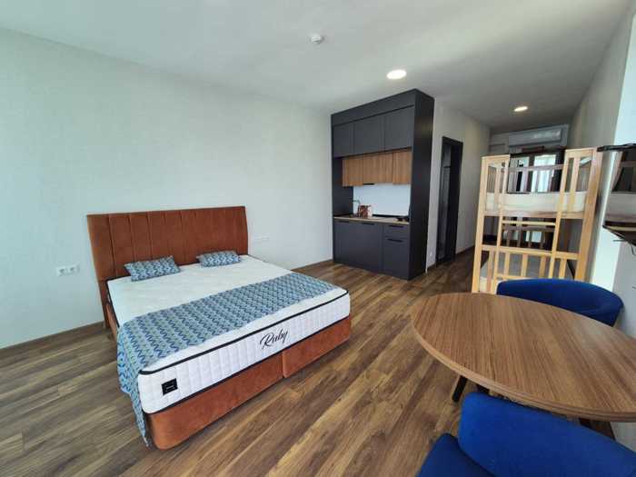 Продается уютная и светлая квартира-студия с качественным ремонтом и прекрасной геометрией площади. Не угловая, Не апартаменты (никаких смежных балконов и стен из гипсокартона)! Окна выходят в тихий двор, что гарантирует абсолютный покой и приватность. Благодаря удачному расположению, в квартире всегда сохраняется комфортный микроклимат: летом здесь царит приятная прохлада, а зимой — сухо и тепло. Нет и не было плесени, окна зимой не "текут"! Прекрасный вид на город, море и горы. Ремонт выполнен с вниманием к деталям и рассчитан на комфортное проживание. Установлена вся необходимая техника: стиральная машина, кондиционер, варочная поверхность, кухонная вытяжка, электронагреватель воды. Проведены все необходимые работы по подключению газового отопления. В следующем году планируется подключение ЖК к газоснабжению (подключение уже оплачено, никаких дополнительных сборов!). Квартира имеет положительную историю аренды за последний год, что говорит о её безупречном состоянии и востребованности на рынке. 23 отзыва на Booking.com со средней оценкой 9.6 это подтверждают! Возможно размещение для 4-х человек (диван раскладывается). В квартире также остается все необходимое для успешной сдачи (соответствующее количество комплектов постельного белья и наборов полотенец, посуда, пледы, подушки, одеяла). Жилой комплекс находится рядом с Новым бульваром по улице Тбел-Абусеридзе, 14/3. Это район с хорошо развитой социально-бытовой и торгово-развлекательной инфраструктурой, в котором созданы необходимые условия как для приезжих, так и для местных жителей. Паркинг подземный, гостевой. В доме расположен продуктовый магазин "Billion", в 50 метрах - супермаркет "Carrefour" с отличным фудкортом. Рядом (но с противоположной стороны дома, никакого шума!) находится новый стадион "Батуми-Арена", в котором регулярно проходят как спортивные, так и музыкальные мероприятия. До моря около 10 минут ходьбы по самой живописной улице города - проспекту Ю.Шартавы. В пешей доступности исторический центр Батуми - "старый город". Это не только комфортное жилье, но и удачная инвестиция.