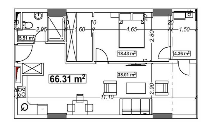 18 этаж 1+1 (1 спальня) Новый Бульвар / ЖК Optima Продается просторная 2-комнатная квартира с видом на горы на Первой береговой линии! $ 1.100 / м².