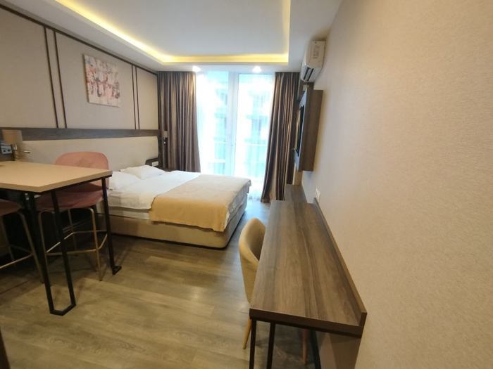 Срочная продажа абсолютно новой большой студии с оптимальным размером балкона. Общая площадь — 42 кв. м. Шикарный вид на море. Отличный вариант для сдачи в аренду и получения пассивного дохода или для собственного проживания. Комфортный апарт-комплекс на первой линии. Торга нет, лучшая цена в комплексе. Лот 4380ХО