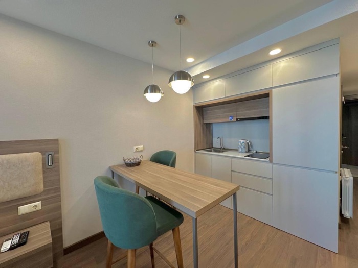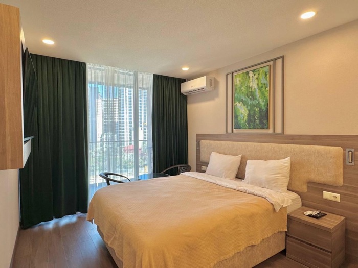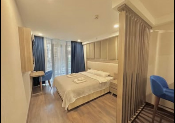 Продается гостиничный номер в Батуми, Реджеби Нижарадзе #18 В здании отеля Санрайз, номер комнаты 308а. 23,3 квадратных метра. 14 этаж. Всего 15 этажей. Очень близко к морю. Вам нужно только перейти дорогу. Цена 36000$ В номере есть необходимая техника: кондиционер, телевизор, электрочайник, стиральная машина. Холодная/горячая вода. Балкон, где стоят кресла и стол для отдыха.