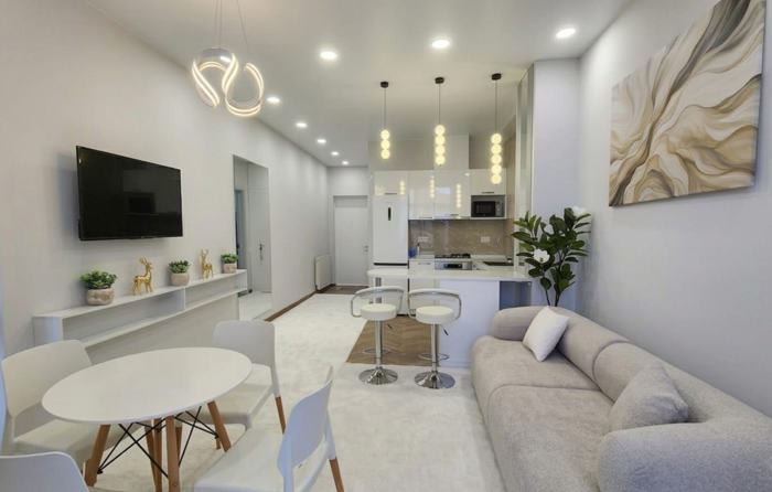 Продаётся стильный апартамент у моря в комплексе Next White — 135 000 $ Адрес: ул. Давида Мамуладзе, 29, район Аэропорт, Батуми Площадь: 54 м² Этаж: 14 из 17 Планировка: 1 спальня + кухня-гостиная (1+1) Санузел: 1 Высота потолков: 2,8 м Балкон / терраса: есть Жилой комплекс: Next White Застройщик: Next Group Год постройки: 2024 Преимущества квартиры: • Светлый современный ремонт — можно заезжать и жить • Полностью меблирована и оборудована техникой • Терраса с видом на море • Подключён газ, установлено отопление • Просторная и функциональная планировка О комплексе: • Премиальный жилой комплекс в 100 м от моря • Фитнес-центр, ресепшен, паркинг • Современная архитектура и качественные материалы • Развитая инфраструктура поблизости: кафе, магазины, транспорт • Застройщик — надёжная компания Next Group, лидер рынка Батуми
