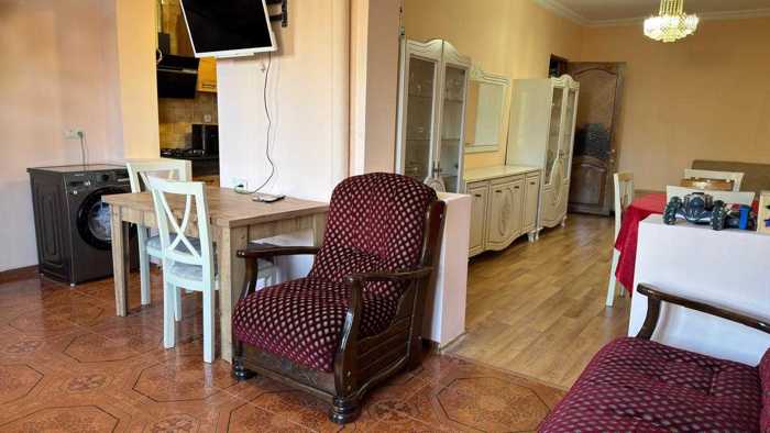 Продается квартира с мебелью и техникой рядом с больницей Сагория. Всё остается в квартире: холодильник, стиральная машина, газовая плита, телевизор и шкаф. Все виды коммуникаций присоединены, находится в 50 метрах от остановок, рядом с квартирой есть магазины, пекарни и аптеки. Это была одна комната с лоджией, но я переделал её в двухкомнатную, на 9-м этаже 9-этажного здания. Изолированная спальня, металлопластиковые окна, железная дверь. Потолок лифта в идеальном состоянии. В настоящее время я сдаю её родственнику за 500 лари, и если нужно, она может остаться. Я собственник, в квартире есть всё, начиная от ложки и заканчивая посудой.