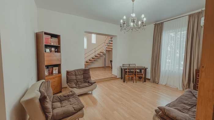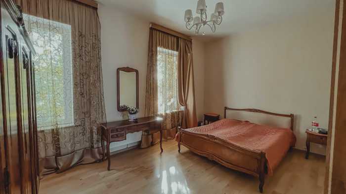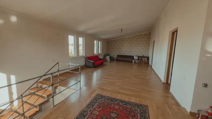 В Рустави, в престижном месте рядом с мэрией. Продается квартира типом дуплекс, на 2-м и 3-м этажах, 8 комнат, 210 квадратных метров общей полезной площади, отремонтированная, с высокими потолками, капитальная квартира, покрытая монолитным железобетонными перекрытиями. С парковкой и подвалом. Возможен обмен на 3/4-комнатную квартиру с вашей доплатой. Цена? Гораздо дешевле за квадратный метр по сравнению с ценами в городе!
