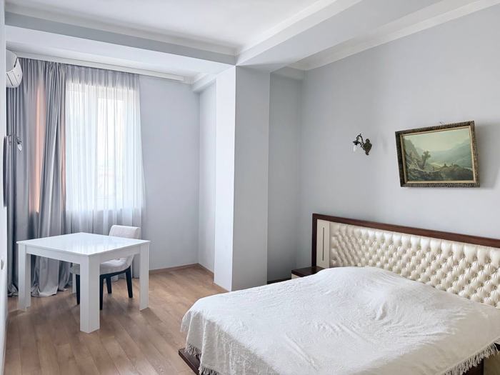 Сдается чистая, светлая и уютная 2-комнатная квартира на улице Цинандали, в новостройке, идеально подходит как для отдыха, так и для временного проживания, рядом с метро 300 Арагвели. В квартире вы найдете: Комфортные спальни и гостиную Полностью оборудованную кухню Всё необходимое оборудование и мебель Кондиционер Телевизор и Wi-Fi Постоянная горячая вода и отопление Чистота и порядок гарантированы. Разрахована на 2-3 человека. 2 минуты пешком – метро 300 Арагвели. Парковка возможна на улице. Ближайшие магазины, аптеки и транспорт доступны. Сдается посуточно - 120 лари T-592154005
