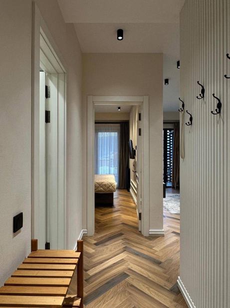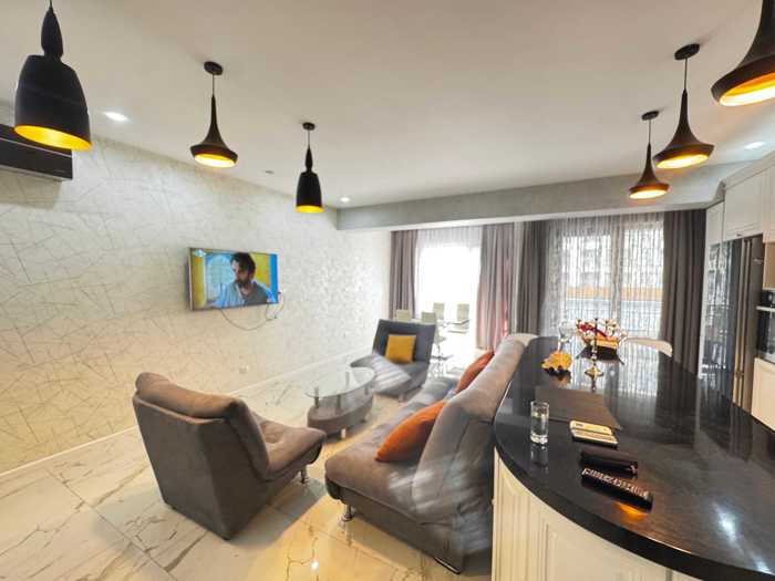 Квартира новая, отремонтированная. Не заселена. 2 спальни, гостиная в студийном типе. 2 санузла и 2 балкона.