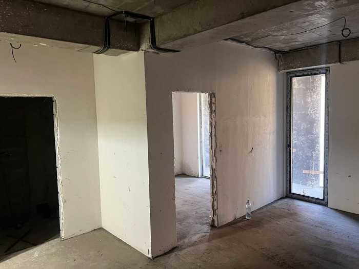 Срочно продается квартира в завершенном здании в Авлабаре, на улице Юстина Абuladзе. Квартира находится в состоянии зеленого каркаса. Электрические точки завершены, откосы побелены гипсом, трубы отопления завершены, установлен железный дверь.