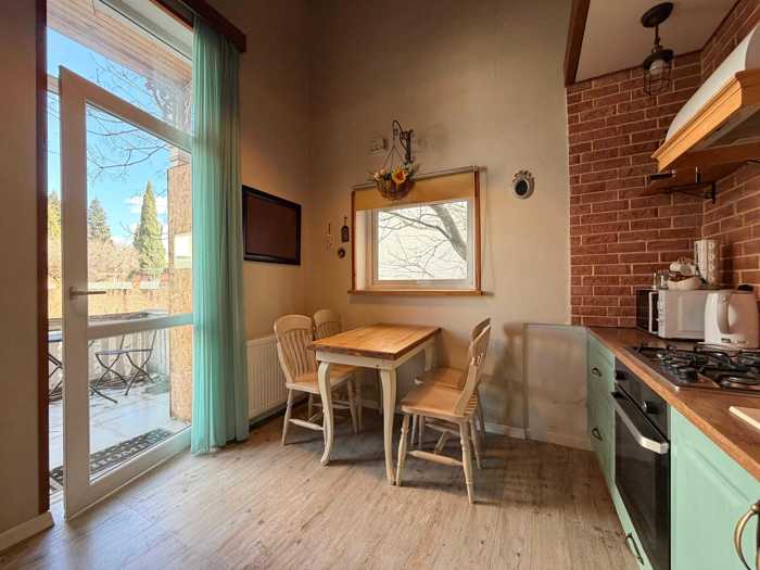 Продается светлая квартира с высокими потолками (более 5 м) недалеко от театра Марджанишвили! Вход с улицы. Квартира отремонтирована, продается с мебелью и бытовой техникой. В квартире две большие и одна маленькая спальни, а также веранда с прекрасным видом! Квартира сдается туристам и приносит постоянный доход!