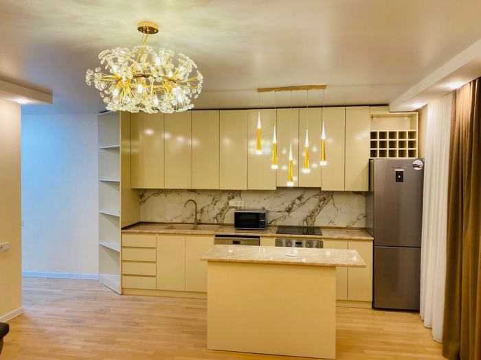 Сдается отремонтированная квартира площадью 127 м² с 4 комнатами, светлая, проходимая, с 2 спальнями (1 мастер-спальня), 2 ванными, меблированная, с техникой, центральным отоплением, в центральном, зеленом и уютном районе города рядом с Сити Моллом. В доме имеется пассажирский лифт.