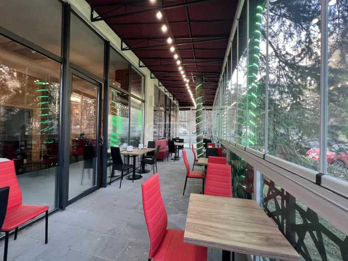 |Коммерческое помещение на улице Квитхи. В здании виллы Резиденс. 2 комнаты, с инвентарем кафе-ресторана. Новейшее оборудование, полностью оборудованная кухня. Вид на улицу, парковка, мебель, интернет, кондиционер, два санузла.