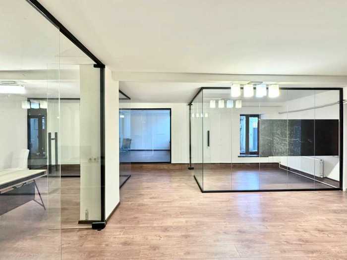 Сдается в аренду 140 квадратных метров офисных помещений в строящемся здании на улице Т. Табидзе в Ваке. Помещение имеет два независимых входа: со стороны подъезда здания (3 этаж) и со стороны здания (первый этаж). В офисном помещении есть 3 рабочих/конференц-зала, общая гостиная, приемная, две ванные комнаты. Офисное помещение имеет общие выходы с собственником, у которого есть офис с отдельным входом - юридической фирмой.