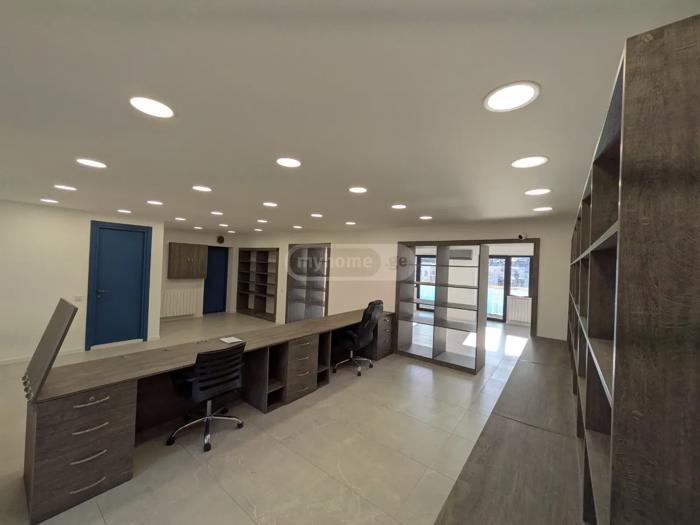 ფართი მდებარეობს იალბუზის ქუჩაზე, სოკარის სათაო ოფისის ზემოთ 300 არაგველის მეტროდან 2 წუთში. ფართი მოწყობილია საოფისედ: • გათვლილია 10⁃12 ადამიანზე. • ალუმინის ენერგოეფექტური ვიტრაჟული სისტემა, სავინტილაციო ავტომატური გაღებებით. • ფასადის შიდა მხარეს დამონტაჟებულია ხის რაფა, რომლის გამოყენება შესაძლებელია დამატებითი სამუშაო/დასასვენებელი სივრცის შესაქმნელად. • იატაკში ჩამონტაჟებულია სპეციალური როზეტები. • სადარბაზოდან საოფისე სივრცეში შემოსასვლელში არის ელექტრო კარი, რომელიც მუშაობს ბარათების წამკითხველზე, ხოლო შიდა მხრიდან სენსორზე. • ფართს აქვს სამზარეული, სველი წერტილი და პატარა დამატებითი სასაწყობე სივრცე.