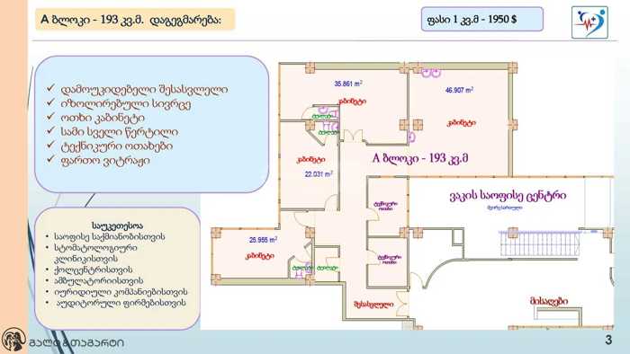 Продается ремонтируемое офисное помещение площадью 65 м² в Ваке по адресу: улица Кипшидзе, 3. Помещение состоит из двух независимых зон, двух точек контакта. Вокруг находятся все необходимые объекты: питание, супермаркеты и транспорт. Если у вас есть интерес, пишите по номеру, указанному в объявлении. В цену не включен НДС.