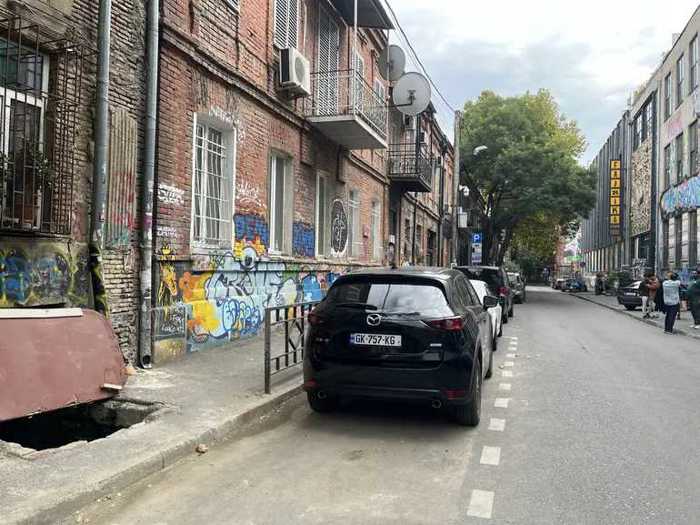 Я собственник. 43.5 м^2 прямо перед фабрикой, напротив лестницы. На улице Эгнате Ниношвили N 5. На дороге. Зданию в 2025 году провели полную усиление, залили 30 см бетонной плиты, а ниже нее дополнительно 10-15 см пемзы, также были укреплены стены. Есть санузел. Высота потолка 2.70 - 2.90 м.