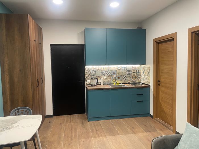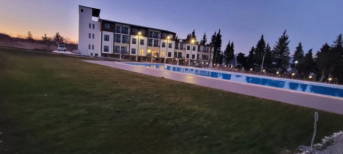Сдается апартаменты типа отеля. Собственный 25-метровый бассейн. Квартира с видом на бассейн. Со всеми необходимыми удобствами. Максимальное количество гостей — 4. В спальне одна большая кровать, в гостиной диван, который раскладывается и вмещает 2 человека. Имеется прачечная и сауна. Один месяц стоит 980 лари. Апартаменты находятся в 4 км от центра Телави и в 6 км от Киндзи. Также возможна аренда посуточно, минимум на 5 дней.