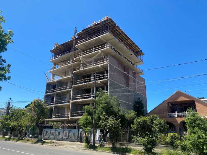 Срочно продается частный дом в Кобулети, улица Руставели 227-б, который функционировал как гостиница. Площадь двора 966 квадратных метров, дом капитальный, 3 этажа, с кладовками. Его двухблочная конструкция, окруженная алюминием, никогда не ощущается сырой (даже сейчас, после 10 лет простоя взаперти). Полы первого и второго этажей мраморные, также на первом этаже находится большая мраморная ванная комната (которая использовалась как бассейн), все лестничные клетки также мраморные. Дом полностью пустует и требует косметического ремонта. Идеальное место для гостиницы, есть возможность надстройки этажей. Он расположен в центре Кобулети, в уютном и тихом месте.