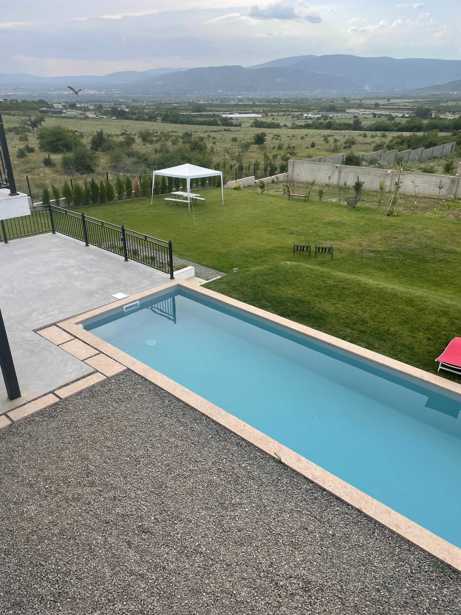 Сдается ново построенный двухэтажный необжитой дом, укомплектованный всей необходимой мебелью и техникой, в престижном и экологически чистом районе (Сагурамо-Навдаранткари), в 20 минутах езды от Тбилиси; в доме три спальни, одна из которых называется 'мастер-спальня', у всех трех спален есть балконы с лучшими видами, также имеются два дополнительных санузла. На первом этаже; жилая комната с камином и кухонной стенкой, укомплектованной высококлассной техникой. В доме есть большая терраса, соединенная с бассейном (3x9) м. Также есть один кабинет с собственной террасой и подсобное помещение (склад). Двор обладает отличным рельефом. Озеленен различными растениями, функционирует автоматическая система полива, также во дворе есть фруктовый сад, огород и вечнозеленые деревья по периметру с цветником, который орошается капельным поливом. Рядом с бассейном есть техническое помещение со складом и санузлом. Также в входной зоне имеется площадь 80 кв. м для парковки 3 автомобилей. Имеется постоянный водопровод, также дополнительный резервуар для воды, автономная канализация и природный газ. В доме центральное отопление, также дополнительно имеется подогрев пола.
