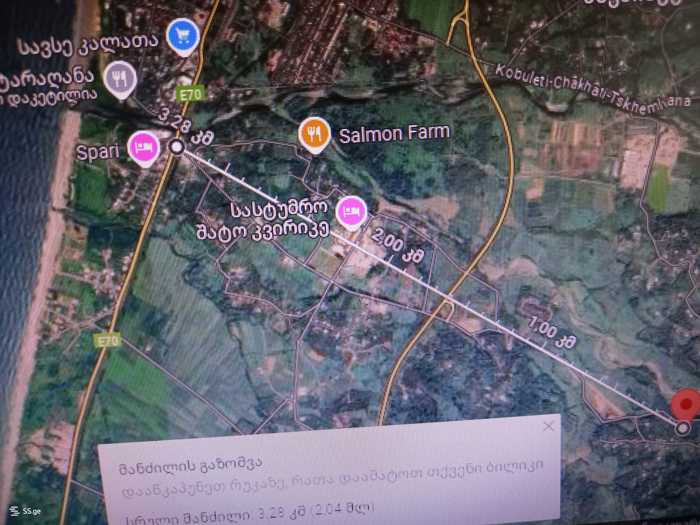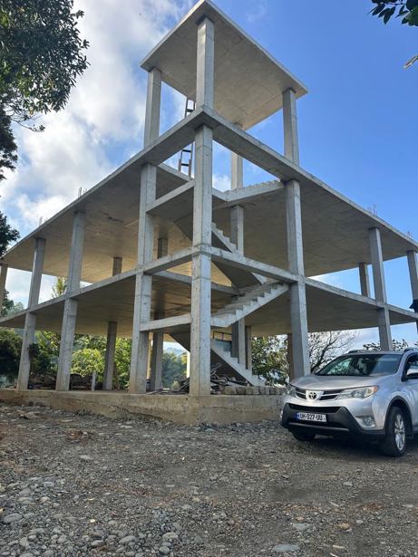 Квирике Продается Земельный участок НЕсельхоз назначения (что дает право приобретения его иностранцами!) в поселке КВИРИКЕ , Кобулетский район, Аджария, Грузия. До Кобулети и ближайшей автострады - 3 км, до Батуми около 25 км. Размер участка: 3 333 м2 расположен на высоте 300 метров над уровнем моря. С участка открывается завораживающий вид на море - 180 градусов, а также на горы и долину -180 градусов. На участке возведена железобетонная конструкция под строительство дома общей площадью более 400 кв.м. Предполагаемый размер строения: 1 этаж: 15,7м х 13м = 204,10 м2 2 этаж: 15,7м х 13м = 204,10 м2 3 этаж: эксплуатируемая плоская крыша (патио, солярий) 16,4м х 13,7м = 224,68 м2 Смотровая площадка над эксплуатируемой крышей: 4,60м х 2,9м = 13,34 м2 Подвал: 4,48м х 8,97м = 40,20 м2 Подпорная стена: 43 м2 На участок подведены: вода, электричество ( 2 счетчика 380 ватт и 220 ватт), газ. В поселке имеется кабельный интернет. В пределах 1,5 км - продовольственный магазин, рядом остановка автобуса до Кобулети. На террасах участка: сад мандариновых деревьев, а также апельсиновые, лимонные деревья, инжир, яблоки, ткемали и лианы киви. На плоской части - тенистая аллея (около 70 метров) из хвойных деревьев (27 шт), родниковая вода в 200х метрах Вложения: покупка земли со старым строением, снос старого дома, бетонные подпорные стены, фундамент, глубинные подушки под фундамент, полный бетонный каркас дома и лестничные пролеты, расширение и укрепление подъездной дороги, архитектурная и проектная документация, оформление документов в мэрии Кобулети. ЮРИДИЧЕСКИЙ СТАТУС: Земля оформлена, как участок НЕсельхоз назначения, что дает право приобретения ее иностранцами, а также получение вида на жительство. Проект дома в процессе переоформления в связи с изменениями в размерах (1-2 месяца). Фасад и архитектуру можно менять в процессе достройки. Цена: Проект продается по стоимости вложений - 220 000 USD. Возможен разумный торг.