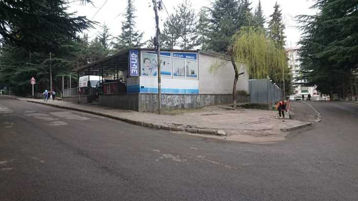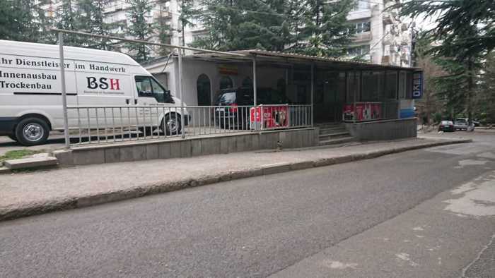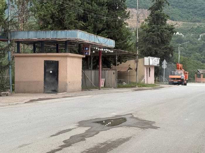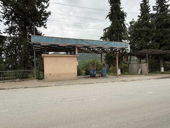 В поселке Казрети в сосновом лесу находятся два бака по 10 и 16 тонн, работающие на двух столбах автозаправочной станции.