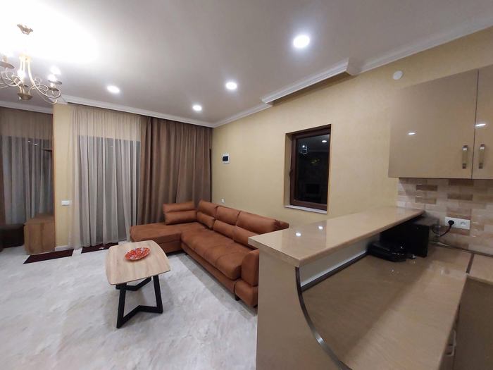 Продается квартира площадью 57 кв.м на 5 этаже в Bakuriani Plaza, с 1 изолированной спальней, 1 санузлом, студийным типом гостиной и большой террасой. Квартира солнечная, теплая и уютная. Подключены все виды коммуникаций. Здание расположено на улице Бакуриани, есть администрация, парковка во дворе, детская зона и т.д. Горнолыжная трасса находится в 5 минутах пешком от 25-го. С/К 64.10.08.078.02.04.507