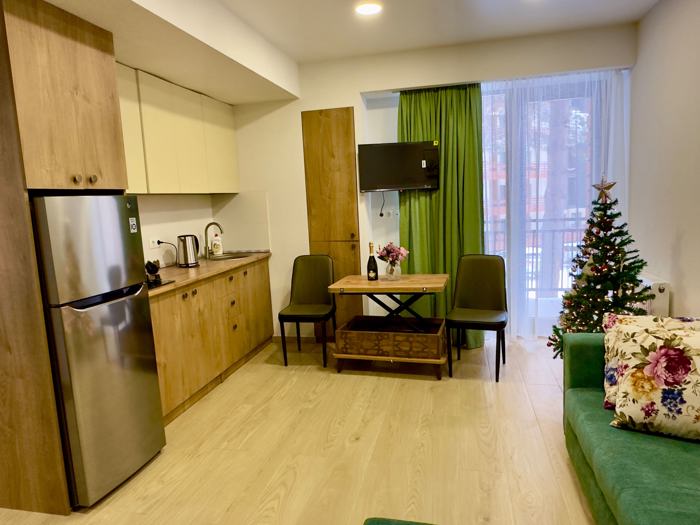 Ждем вас в комфортабельной и уютной квартире гостиничного типа, конечно же с прекрасным видом на Бакуриани. Квартира расположена в курортной зоне Кристалла, в доме Crylsal Loft.