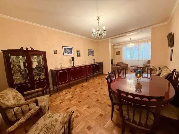 |Он расположен в начале улицы Бахтриони, за садом Букия и станцией метро. К квартире прилагается мансарда площадью 80 квадратных метров, которая приватизирована и может использоваться как мезонин, а также как полноценная комната. Никакого строительства! Это очень прочный и здоровый дом, очень удобно расположенный. Имеет два балкона: 4 кв.м. возле спальни и 15 кв.м. возле гостиной. К квартире прилагается подвал площадью 14 кв.м. Во дворе есть парковочное место. Квартира очень здоровая, с естественным освещением и двумя балконами. Рядом со спальней есть гардеробная.