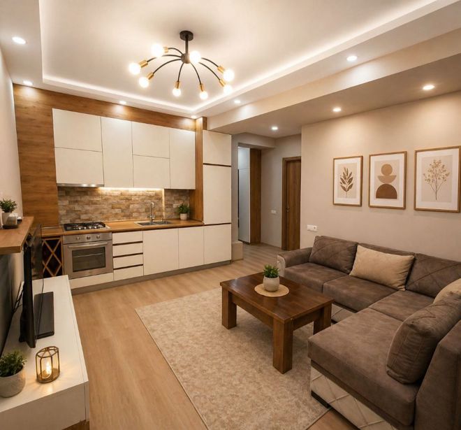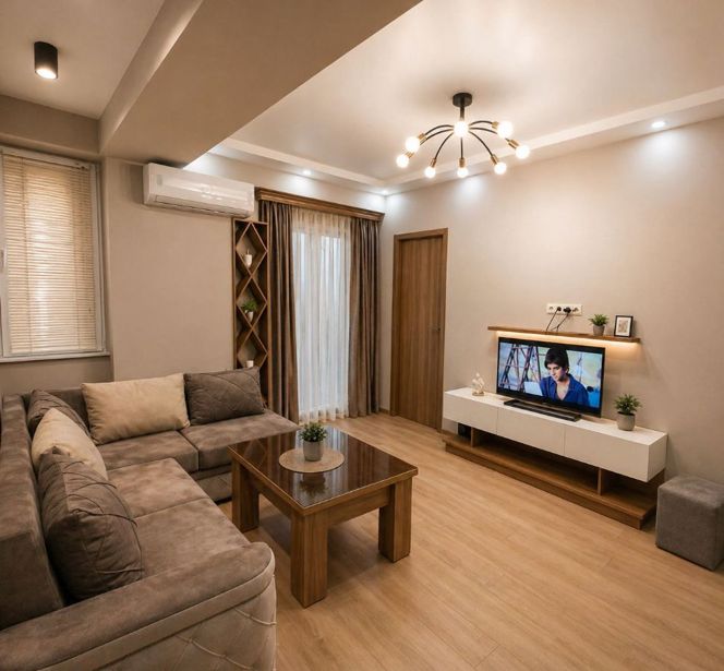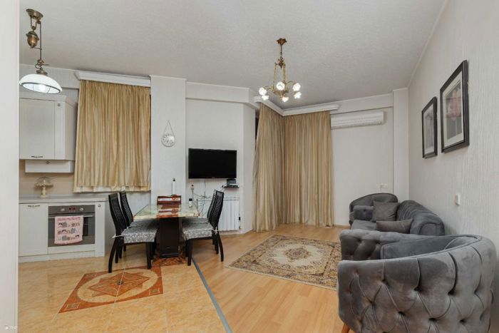 Сдается новая, нестандартного проекта квартира площадью 60 кв. м, расположенная на 8 этаже 9-этажного здания. В квартире имеется одна спальня и одна комната, а также один балкон, который создает дополнительный комфорт. Квартира отличается современным дизайном и новым ремонтом. В интерьере используется деревянный пол, что придает теплоту и уют жилью. В квартире оборудована столовая и отдельная прачечная, что делает повседневную жизнь еще более удобной. Эта квартира идеально подходит для тех, кто ценит спокойствие и современную обстановку. 2 месяца предоплаты