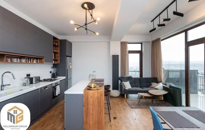 Сдается 2-комнатная квартира в Сабуртало, на улице Гиви Картозиа, в комплексе M2, рядом с ипподромом.