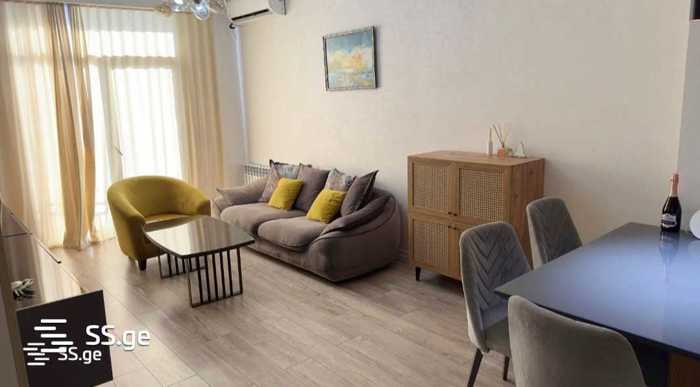 |Европейский ремонт, в отделке использованы элитные материалы, оснащена современной техникой. Квартира имеет боковой вид на реку Куру и тихий двор. Единый социальный слой. Спальня, кухня-гостиная, мини-кабинет, ванная комната, лоджия. До аэропорта 15 минут, до исторического центра 10 минут. Наличие детской площадки, супермаркетов, кафе, парковки. Предпочтительный язык русский, переписка: английский, грузинский и любой другой.