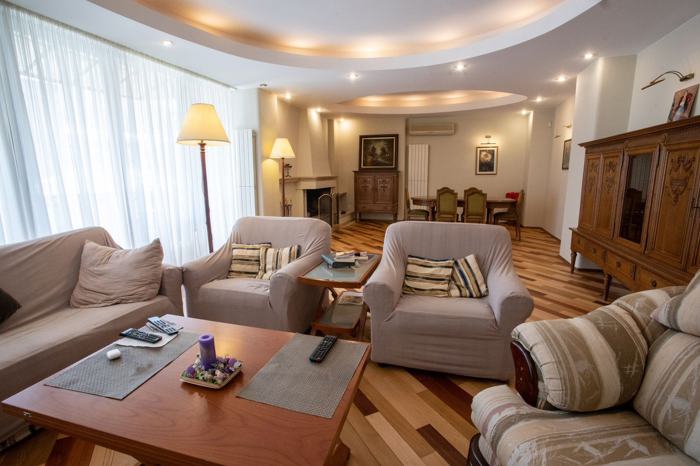 Эксклюзивная резиденция на улице Атенi | 220 м² | 5 балконов | Камин | Панорамный вид на парк Мзиури Продаётся просторная и светлая квартира площадью 220 м², расположенная на улице Атенi, прямо напротив парка Мзиури, с открытым видом на Мтацминда и центр города. Квартира находится на 5-м этаже 20-этажного дома. Лифт поднимается прямо в закрытый приватный холл, который делится только между двумя квартирами на этаже. 🔹 Основные характеристики: 📏 Площадь: 220 м² 🏢 Этаж: 5 / 20 🔐 Только 2 квартиры на этаже, приватный закрытый коридор 🛏 3 спальни, каждая с собственным балконом 🛁 2 ванные комнаты: Главная ванная – с джакузи В спальне – санузел с душевой кабиной (ensuite) 🔥 Просторная гостиная с камином, витражными окнами и дизайнерским потолком 🌅 Всего 5 балконов – в каждой спальне + главный балкон в гостиной, вид на парк Мзиури, Мтацминда, город 🍽 Отдельная кухня и столовая / семейная зона 📦 Кладовая / подсобное помещение 🛋 Продаётся с мебелью и техникой 🚗 Парковка и дополнительные преимущества: Собственный гараж (въезд узкий, но полностью функциональный) Закрытый двор со шлагбаумом, возможна парковка второго автомобиля Личное подсобное помещение (кладовая) ✅ Идеально подходит для: Представительского жилья, дипломатической резиденции, проживания иностранной семьи, корпоративного размещения, а также для инвестиций (premium аренда / Airbnb Luxe / долгосрочная аренда для посольств). 💵 Цена: 580 000 USD
