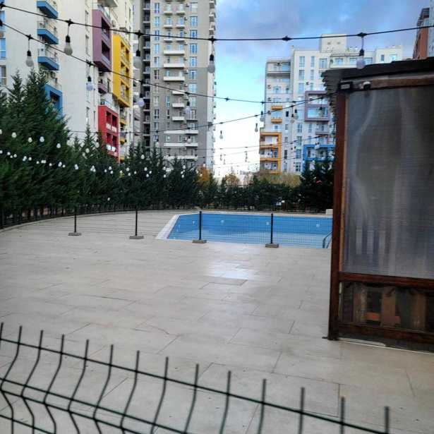 Сдается "В комплексе Зеленого Алмаза" 2-комнатная новая отремонтированная квартира, с 1 изолированной спальней, студией в гостиной, балконом, видом на бассейн, центральным отоплением, кондиционером, новой мебелью и техникой.