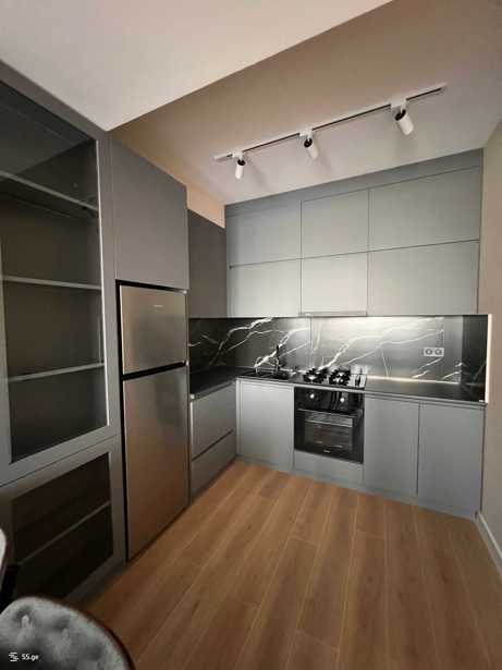 Квартира расположена перед станцией метро Гоцридзе, на улице Нинуа, в новостройке, с новым не заселенным ремонтом, встроенной кухней, мебелью и техникой. 2 изолированные спальни, обе с первичным освещением.