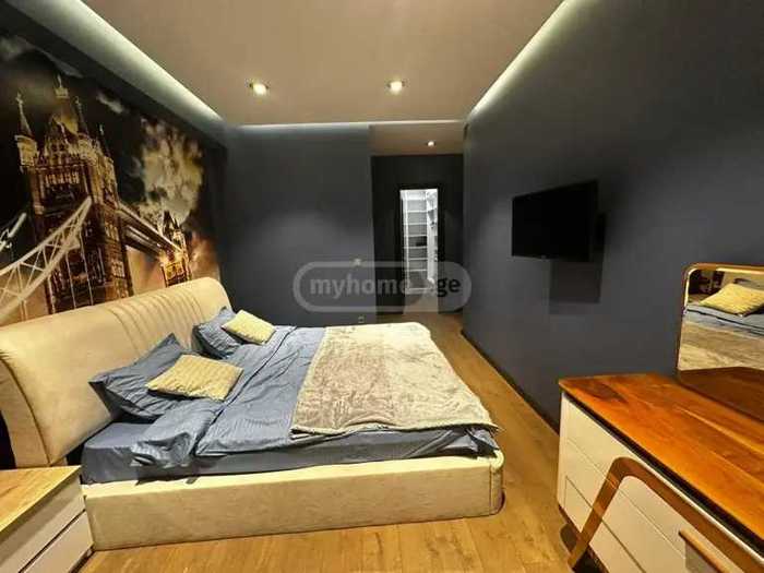 Сдается новая отремонтированная квартира в современном стиле в Тбилиси, в жилом комплексе 'Lisi veranda'. • Квартира расположена в новом проекте, ул. Тирифеби, 1, с охраной 24 часа, зеленым парком, Carrefour, кафе и аптекой. • 3-й этаж 5-этажного здания. • 180 кв. метров, уютный балкон, терраса с красивым видом. • 5 комнат, 3 спальни, 2 ванных комнаты (в одной спальне есть собственный санузел с ванной и гардеробной), отдельная кухня. • Квартира полностью новая, меблирована мебелью высокого качества, встроенной техникой и изысканным декором. Цена: $2,500