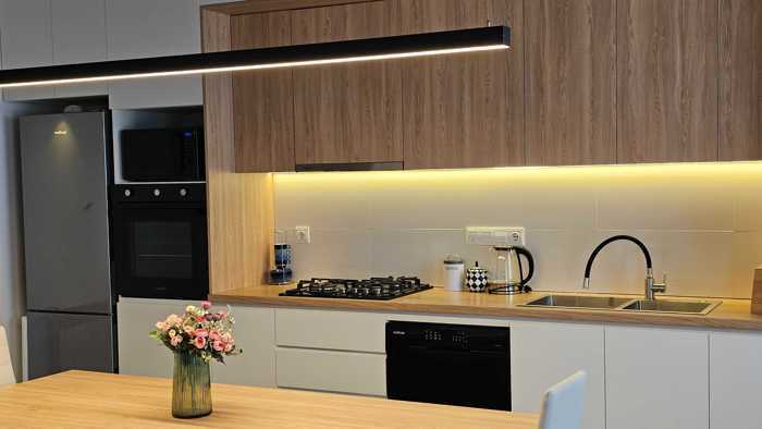 Сдается частный дом с современным интерьером и экстерьером. Большая гостиная и кухня, 4 спальни, 4 ванные комнаты, 1 кабинет, маленькая кухня с кладовой и открытый бассейн. Отремонтировано с использованием качественных материалов, стоит новая мебель и техника. Дом расположен в зелени, в новом, тихом районе.