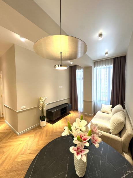 Не копируйте. Я работаю 50/50. Сдается квартира площадью 70 кв.м современного и исключительно стильного дизайна рядом с City Mall, в идеальном месте для комфортной городской жизни. Квартира с новым ремонтом, светлая и очень уютная. Интерьер выполнен в современном минималистском стиле: гостиная объединена с полностью оборудованной кухней, где установлены встроенные приборы, включая посудомоечную машину. В гостиной есть удобный диван, обеденная зона и современное освещение, которое придает пространству дополнительный уют. Санузел — одно из главных преимуществ: просторная ванная комната, в которой есть как ванна, так и душевая зона. Использованы высококачественные материалы и современная сантехника. В квартире также есть кондиционер и все необходимое для комфортной жизни. Идеально подходит как для пары, так и для одного человека, который ценит качество, стиль и местоположение.