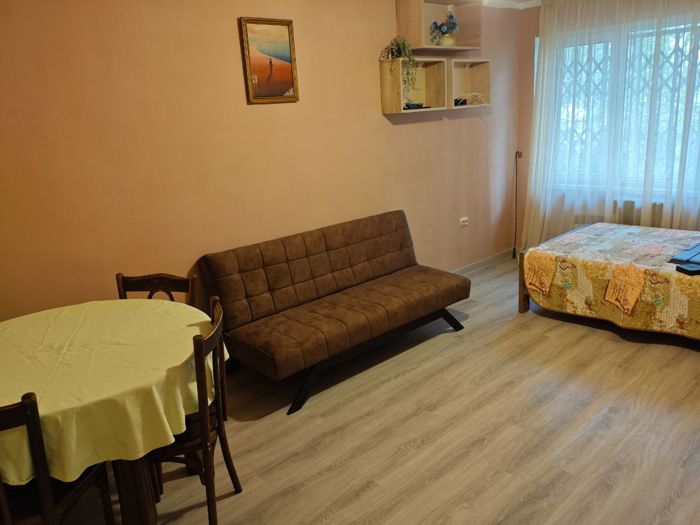 Лучшее местоположение, зеленый двор. Светлая квартира, в каждой комнате есть окно. Отопление, горячая вода, кондиционер. Большая кухня с выходом на балкон. Лифта нет. Депозит за два месяца!